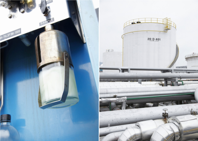 여수공장에서는 생산된 하루 11만 배럴의 휘발유는 탱크를 탑재한 화물 자동차인 탱크로리(tank lorry)와 수도권까지 뻗어있는 송유관을 통해 전국에 있는 GS칼텍스 주유소로 배달됩니다.