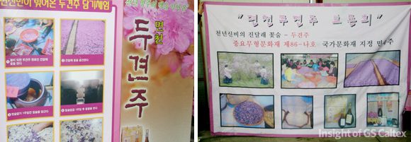 면천 두견주 보존회 오순근회장님과 직접 양조하시는 아주머니께 좋은 말씀을 들었습니다. 혈액순환과 피로회복에 효능이 있으며, 콜레스테롤을 낮추어주어 성인병 예방에도 효과가 있다고 알려졌는데, 이 술을 담글 때 꽃술은 독성분이 있으므로 반드시 제거하고 술을 빚는다고 합니다.