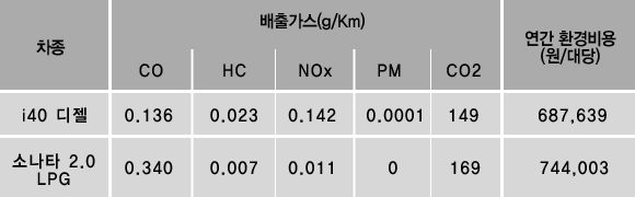 1대당 연간 환경비용을 비교하면 오히려 i40 디젤이 저렴한 상황
