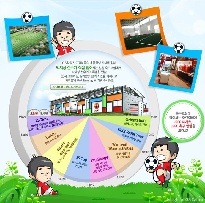 박지성 선수가 직접 참여하는 이번 행사는 미래 한국 축구를 이끌어 나갈 유소년들을 교육하는 박지성 축구센터와 이를 후원중인 GS칼텍스가 공동으로 준비하여 마련되었는데요.