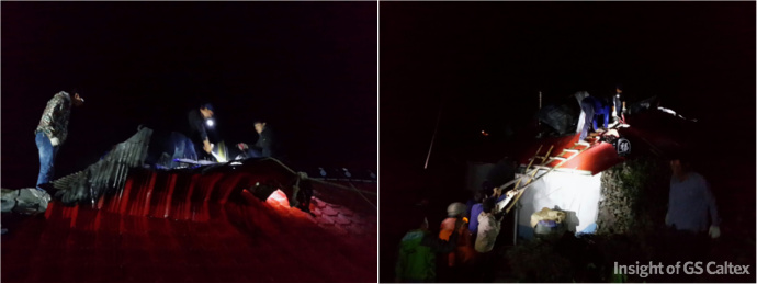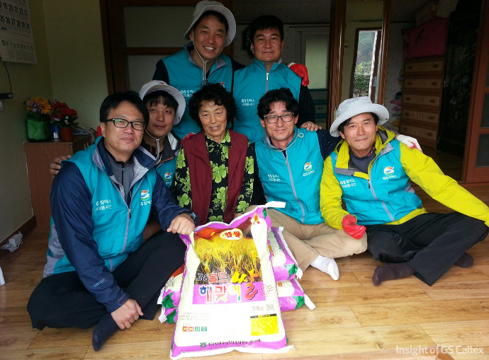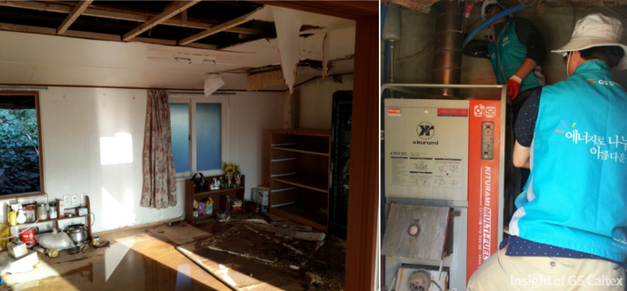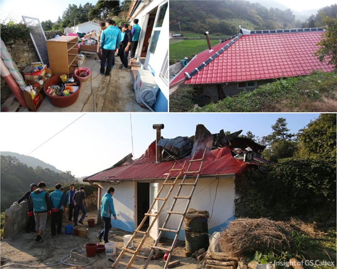 회사에서 집 수리비용 전액을 후원하겠다는 말에 어머님과 동네 주민들은 기쁜 환호와 함께 고마움의 눈물을 흘리셨습니다. 현장에서 지켜보던 나를 포함한 동료들은 GS칼텍스가 진짜 멋진 회사라고 다시 한번 느꼈습니다. 어려운 이웃과 함께하는…, 그 곳에 내가 몸담고 있다는 사실이 너무나 자랑스러운 순간이었습니다.