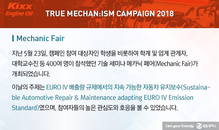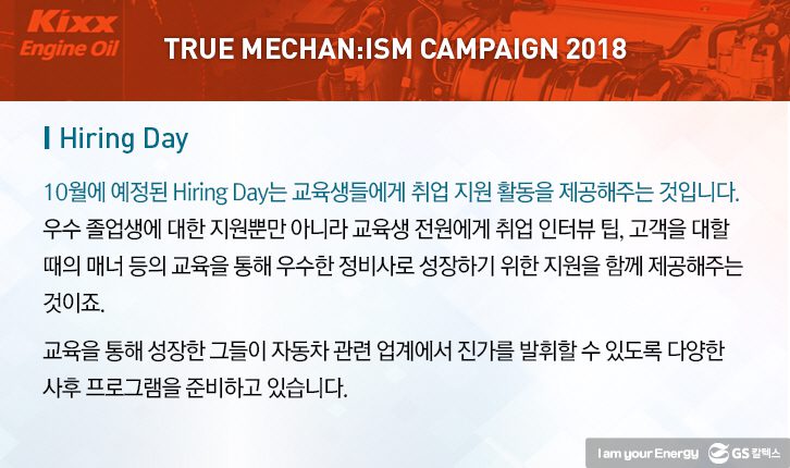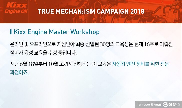 자동차에 생명을 주는 사람, 자동차 정비사. 앞으로도 국내외에서 정비사들과의 지속적인 소통을 통해 숨겨진 니즈를 파악하고, 그것을 충족시킬 수 있는 차별화된 윤활유 마케팅 활동을 펼칠 Kixx의 발걸음에 임직원 여러분들의 많은 응원 부탁드립니다.