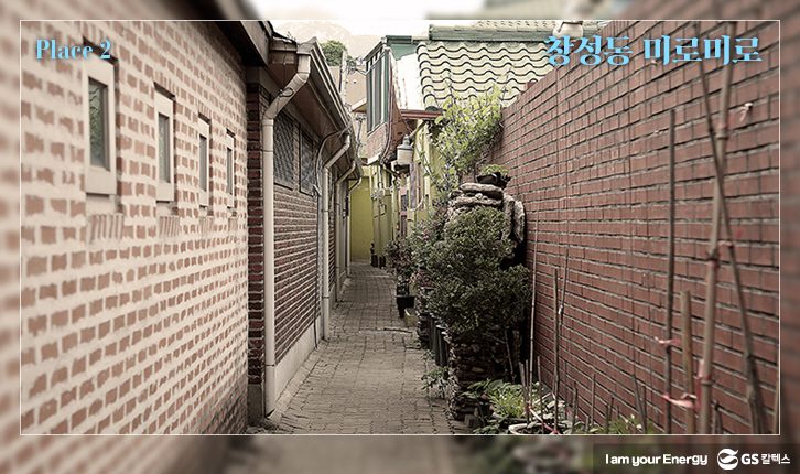 | 담장에서 발견한 재미 | 기왓장 담장에는 빈틈없이 단단한 시멘트 담장으로는 느낄 수 없는 재미가 있습니다. 어깨높이까지 쌓인 기왓장 사이의 틈으로 집 내부가 밖에서도 보이는데요. 이는 자신의 집 내부를 공개하면서 그 담장을 통해 자신도 골목길 풍경을 집 안으로 가져오겠다는 소통의 의미가 있습니다. |