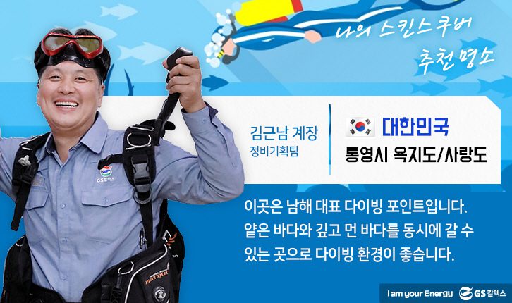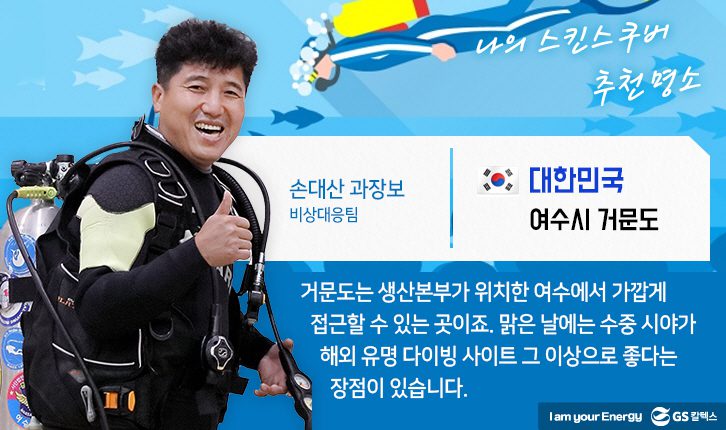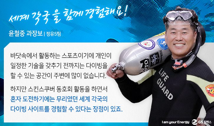 다양한 해양 스포츠 중 맑고 아름다운 바다를 온몸으로 느낄 수 있는 스포츠는 무엇일까요? 바로, 해양 생물과 함께 헤엄치고 형형색색의 산호초까지 즐길 수 있는 ‘스킨스쿠버’가 정답입니다. 찜통더위를 피해 지금이라도 당장 바닷속으로 풍덩 빠지고 싶으신 분, 수영이라고는 한 번도 배워본 적이 없는 분까지 일단 여수 생산본부 스킨스쿠버 동호회의 이야기를 읽어보세요. 그들의 시원한 바닷속 이야기를 듣고 나면, 누구나 스킨스쿠버의 매력에서 헤어나올 수 없게 됩니다. 자, 그럼 다 같이 스킨스쿠버 동호회의 이야기 속으로 풍덩 빠져보시죠!