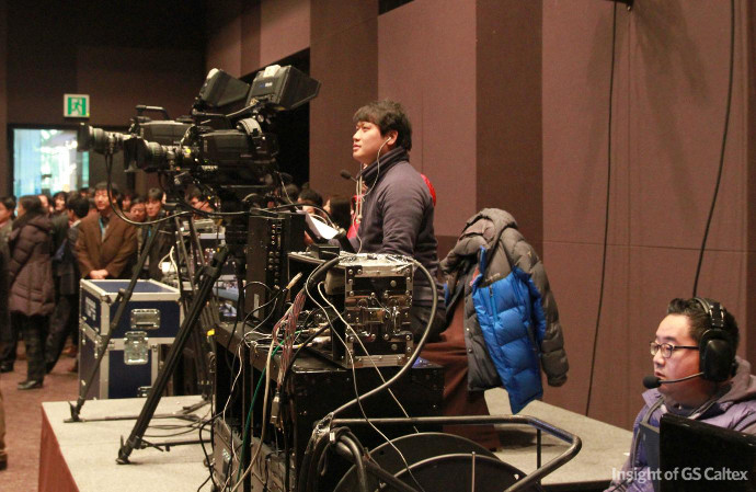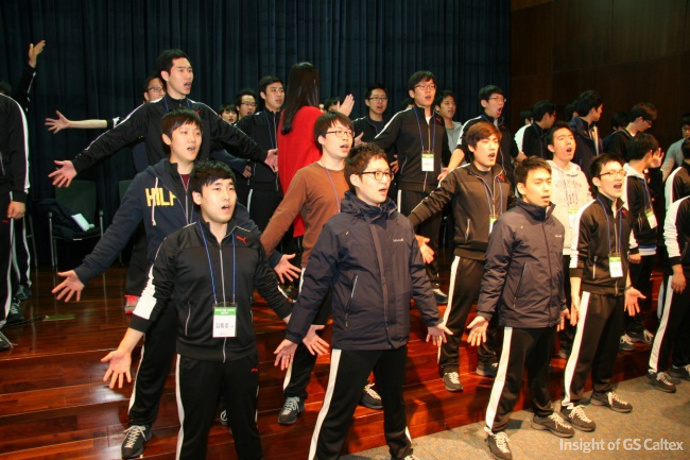 수차례 반복연습을 해서 그런지 무대 환경에 빠르게 적응할 수 있었고, 연습 때보다 더 여유롭고 편한 마음으로 즐겁게 리허설을 마쳤습니다. 개인적으로는 많은 연습도 큰 힘이 되었지만, GS칼텍스/GS에너지에서 내딛는 의미 있는 첫 걸음인 이 무대에 동기들과 함께 서있다는 사실이 어떠한 걱정이나 두려움도 날려 버릴 수 있게 한 것은 아니었을까 생각합니다. 즐거운 마음으로 리허설을 마친 신입사원들은 다음날 2013년 시무식에서 패기 넘치는 목소리로 대미를 장식하였습니다.