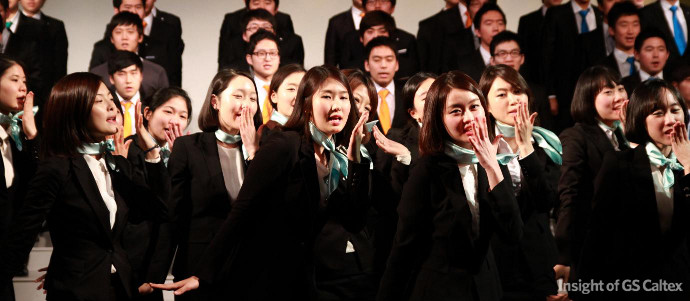약 11분이라는 짧은 시간에 노래와 열정으로 GS칼텍스 가족들에게 울림을 주었던 84명의 신입사원들, 이제는 GSC 각자의 위치에서 온 세상에 더 큰 울림을 줄 준비를 하고 있습니다. 그리고 곧 그 기회가 찾아 올 거라 믿습니다. 한번 외쳐봅니다. ‘새내기여! 세상을 울려라!’